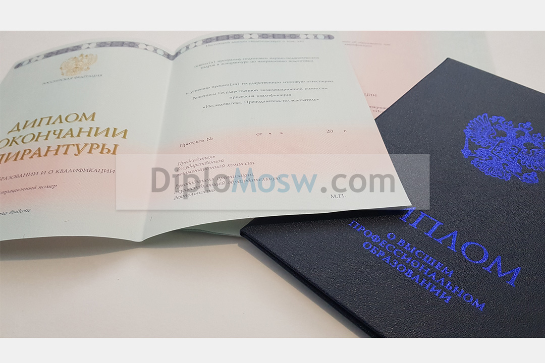 На нашем сайте Вы можете купить диплом об окончании аспирантуры с квалификацией «Исследователь», «Преподаватель-исследователь» по выбранному Вами направлению. Своим клиентам мы гарантируем использование только качественных настоящих бланков, правильное заполнение как в ВУЗе, «мокрую» печать ВУЗа и подписи как в оригинале, сделанные по образцу. Обращайтесь!